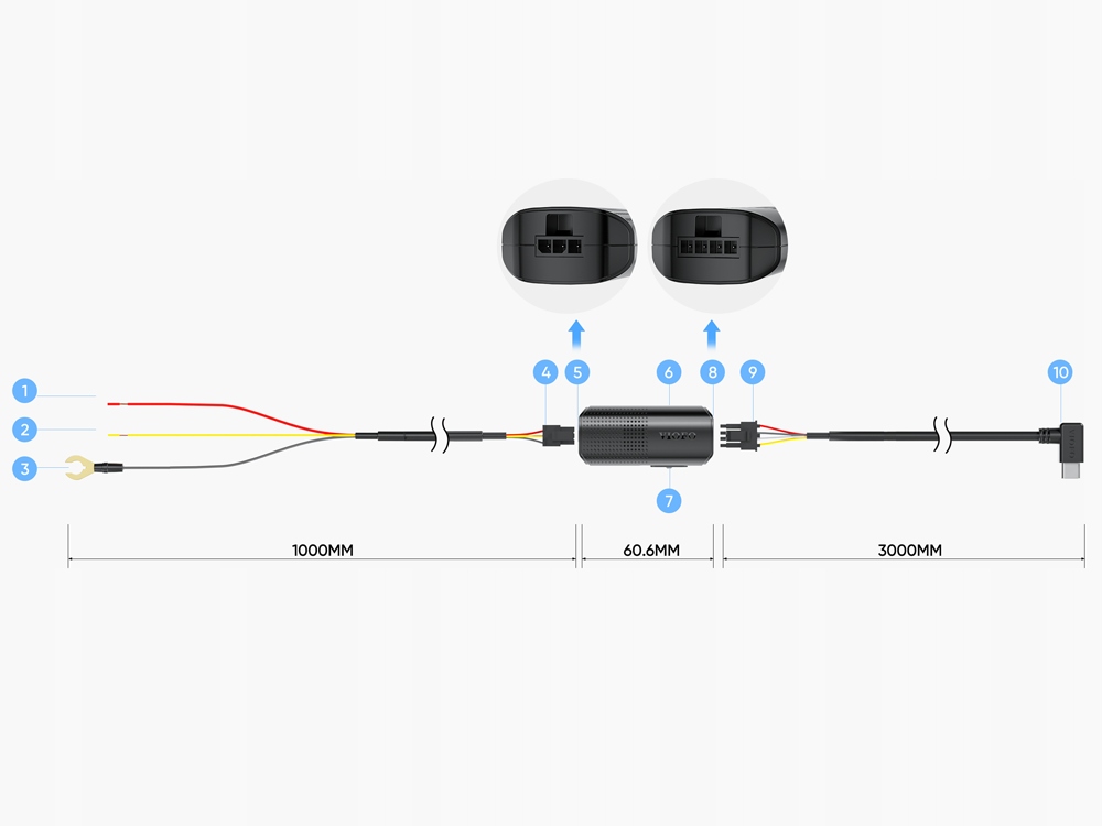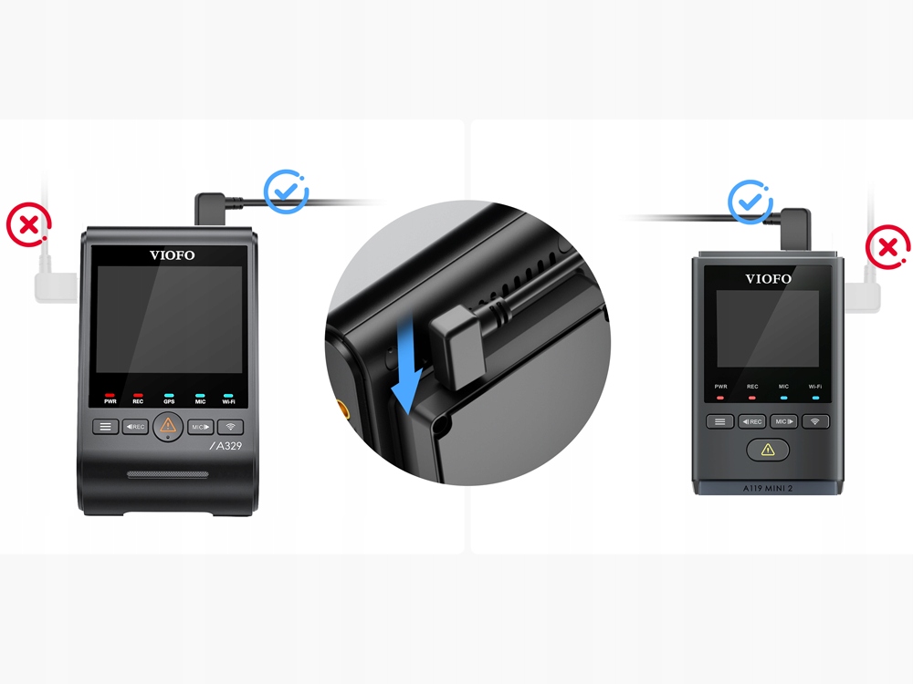 ⚠️ Uwaga: Aby tryb parkingowy działał prawidłowo, upewnij się, że wtyk Type-C jest wpięty do gniazda w module GPS (jeśli występuje), a nie bezpośrednio do boku kamery (zależy od modelu).