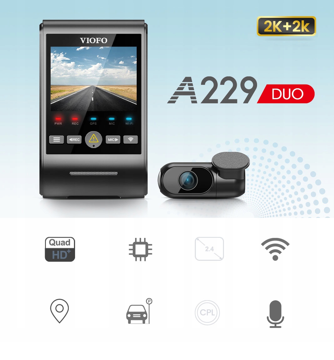 Pierwsza kamera w ofercie VIOFO nagrywająca w systemie PRZÓD 2K + TYŁ 2K.