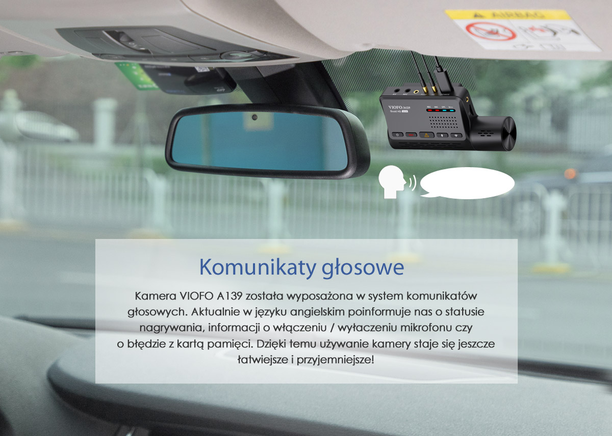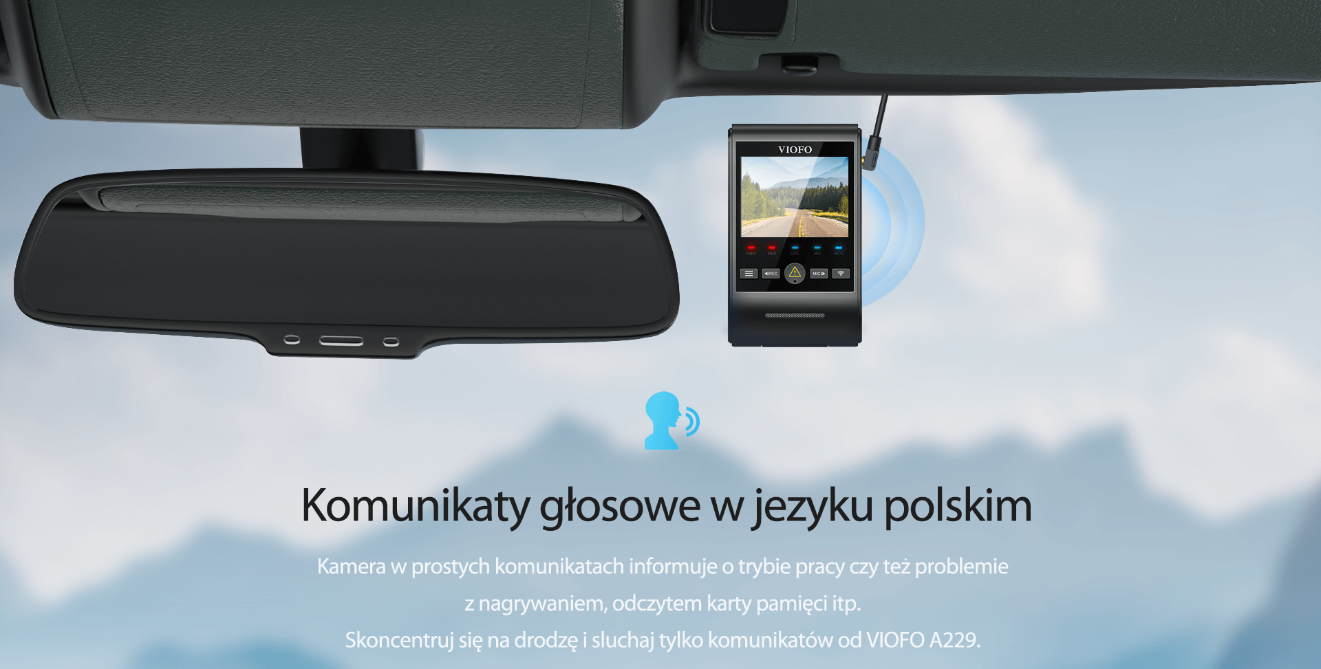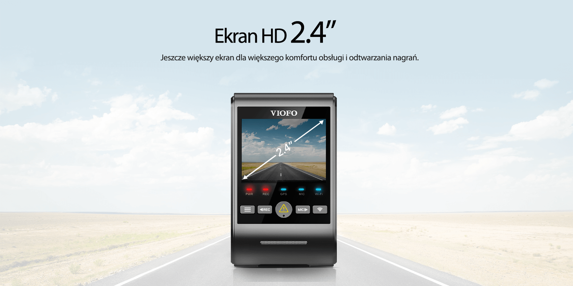 Kamera Viofo A229 DUO-G posiada wyświetlacz HD 2.4" oraz dodatkowo sygnalizuje status swojej pracy za pomocą komunikatów głosowych w języku polskim.
