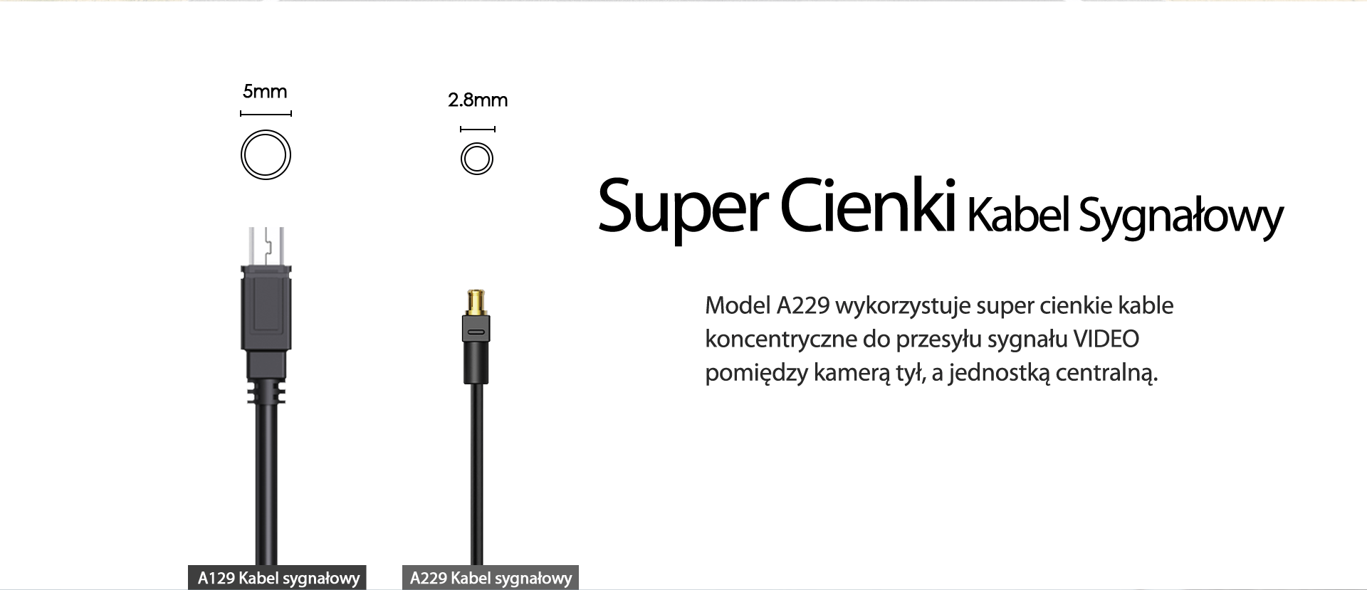 Zastosowanie cienkiego kabla koncentrycznego do połączenia kamery tylnej.