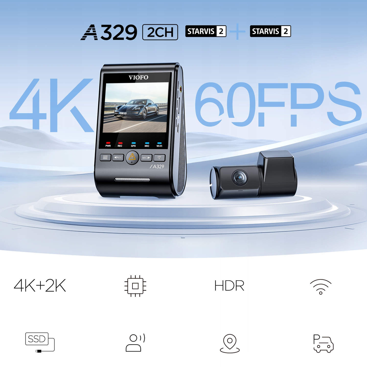 VIOFO A329 2CH to przełomowy model w ofercie producenta, będący pierwszą na rynku kamerą samochodową oferującą rozdzielczość 4K przy płynności 60 klatek na sekundę. Wyposażony w najnowocześniejsze sensory SONY STARVIS 2, system WIFI 6 oraz innowacyjną obsługę zewnętrznych dysków SSD do 4TB, wyznacza nowe standardy w branży wideorejestratorów. Dzięki technologii HDR oraz zaawansowanemu trybowi parkingowemu, model ten stanowi bezkompromisowe rozwiązanie dla najbardziej wymagających kierowców.