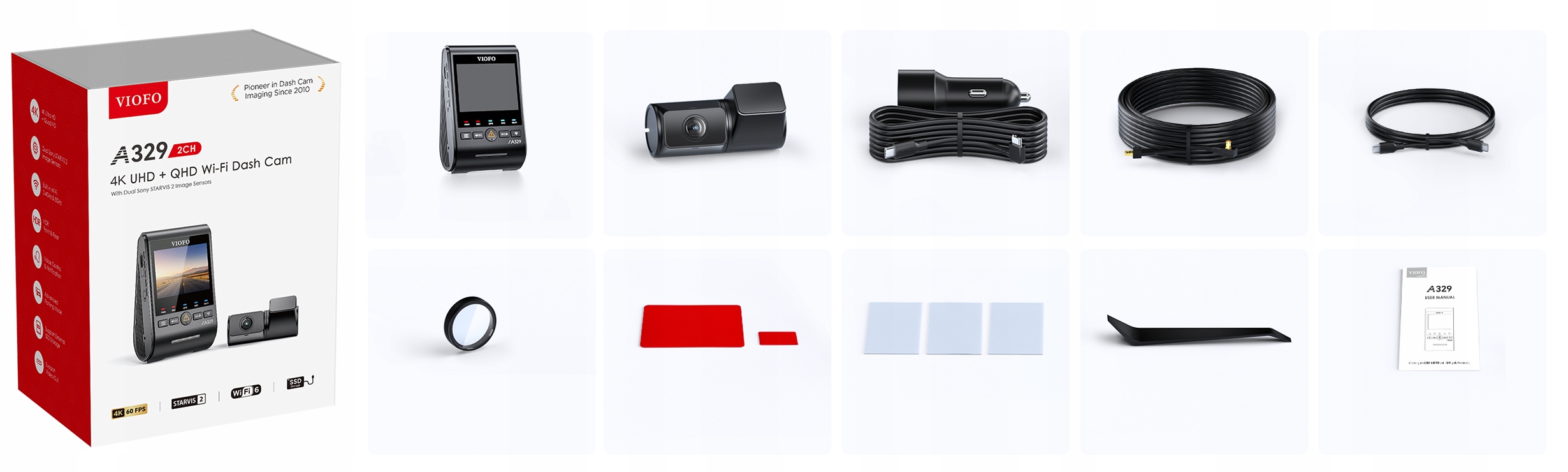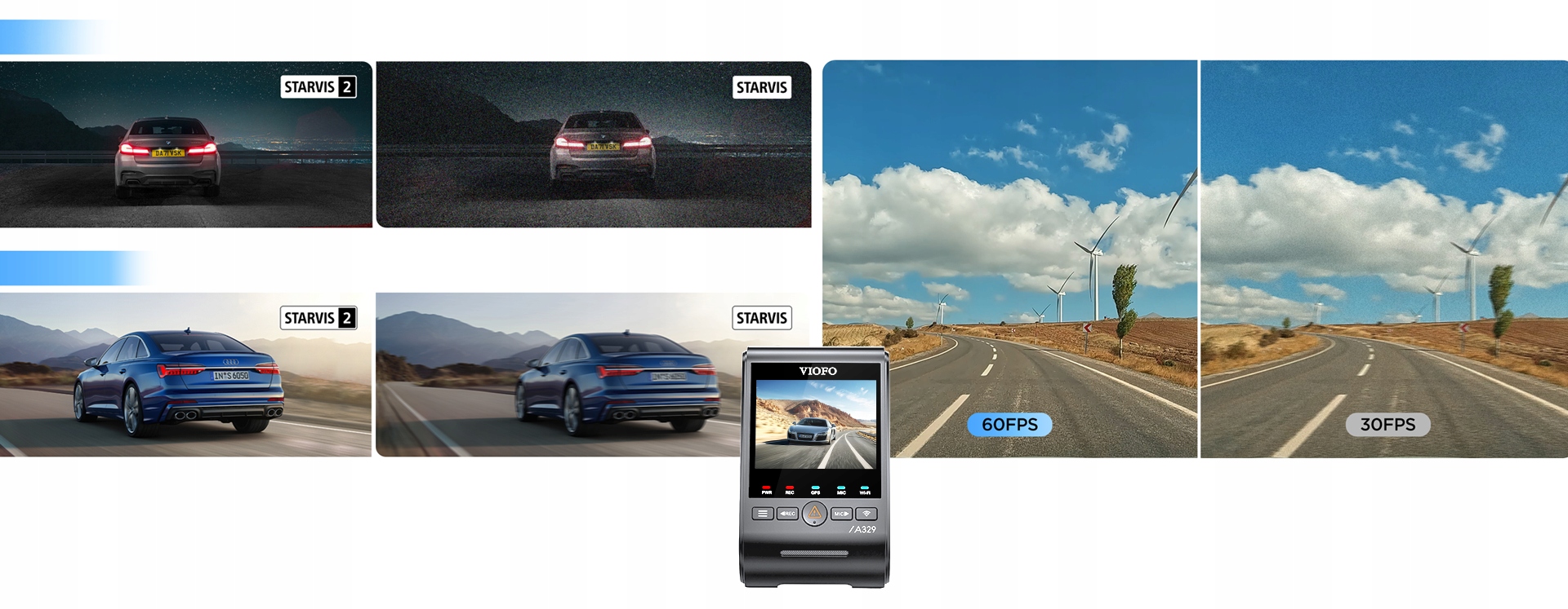 VIOFO A329 PRO zostało wyposażone w dwie matryce SONY STARVIS 2. Przód to najnowszy model SONY IMX678 i tył SONY IMX675.