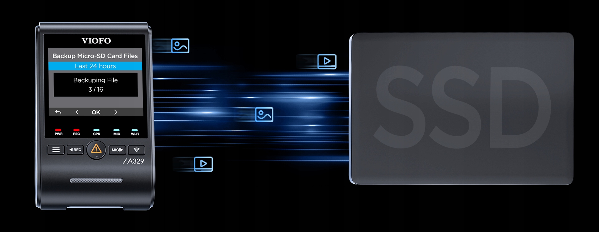 Jako pierwsza kamera na rynku, VIOFO 329, posiada opcję zapisu materiału na zewn. dysku SSD do 4TB. Wydłuż czas nagrywania do kilku tygodni!