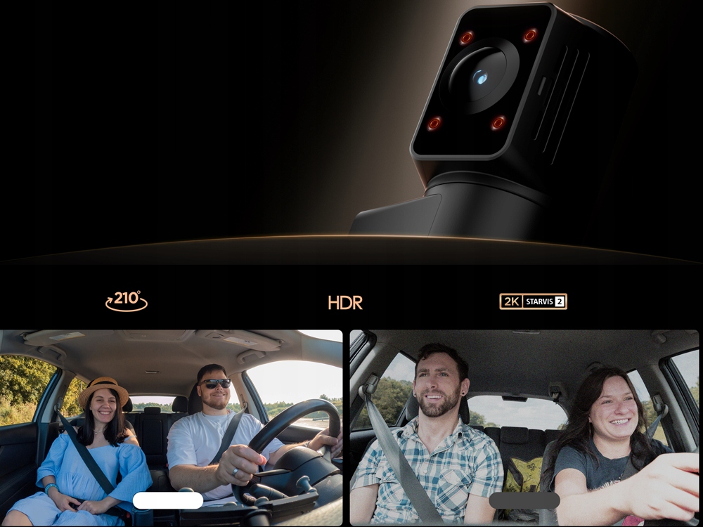 Przednia kamera wykorzystuje matrycę Sony STARVIS 2 IMX678 (1/1.8), która oferuje większą klarowność i mniej szumów w nocy. Wewnętrzny moduł oparty na matrycy IMX675 charakteryzuje się szerokim zakresem dynamiki, co pozwala na rejestrację wyjątkowo ostrych filmów z wnętrza pojazdu.