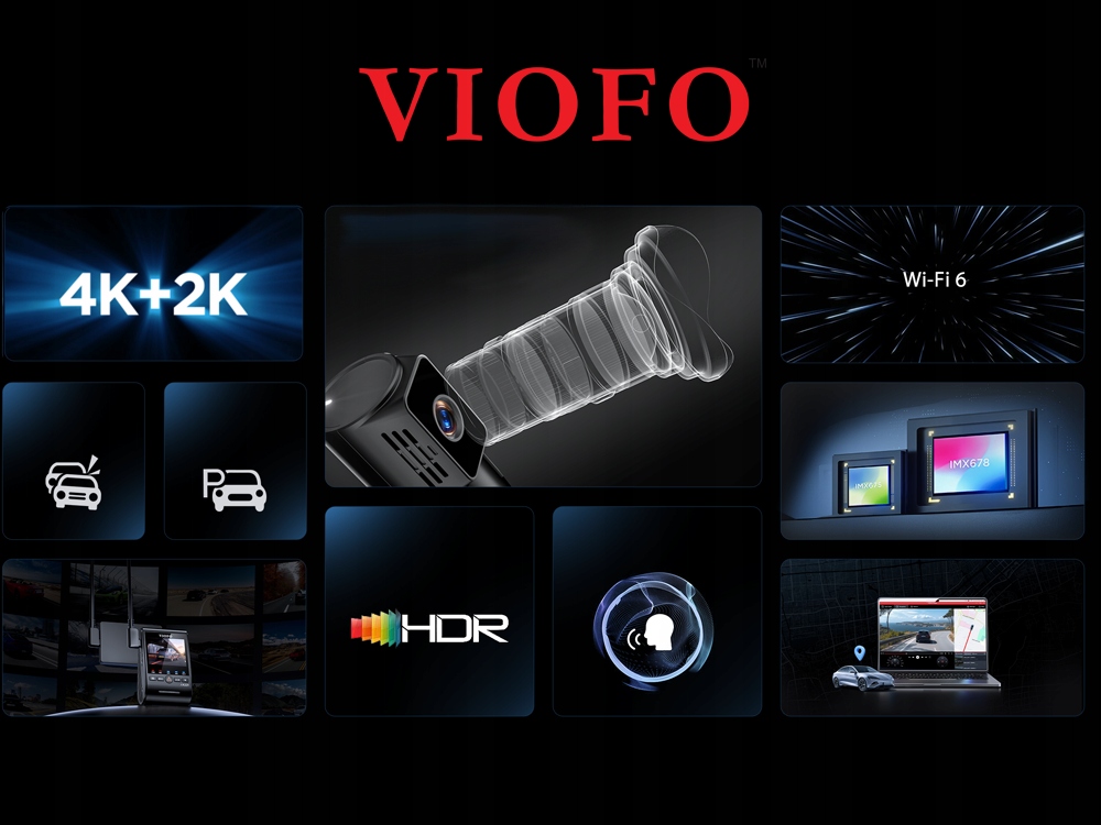 Wbudowany moduł WiFi 6 (2.4GHz i 5GHz) pozwala na błyskawiczne zarządzanie nagraniami przez aplikację VIOFO. Moduł GPS zintegrowany z aktywnym uchwytem montażowym zapisuje prędkość i współrzędne trasy, wspierając systemy GPS, BeiDou, Galileo i GLONASS. Port USB 3.0 umożliwia ultraszybkie pobieranie filmów na telefon kablem (do 55 MB/s na iPhone 15 Pro Max).