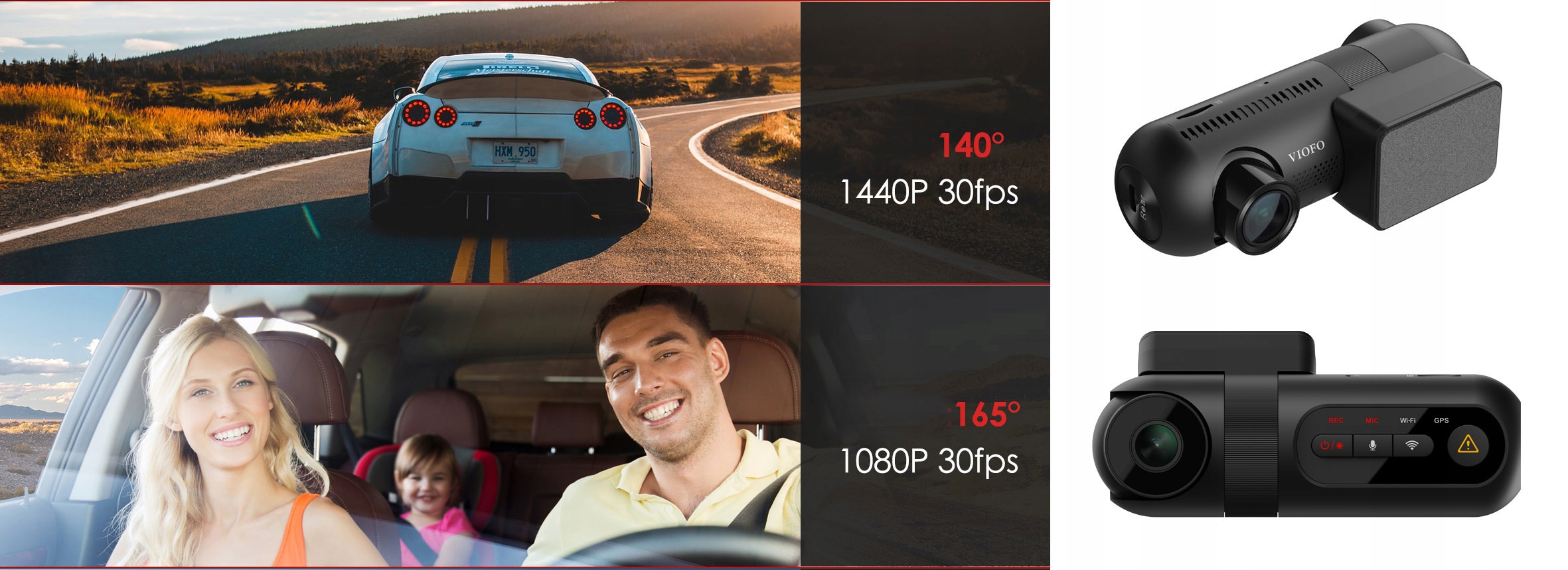 Wideorejestrator VIOFO T130 2CH z kamerą przednią i obrotową kamerą wewnętrzną na podczerwień
