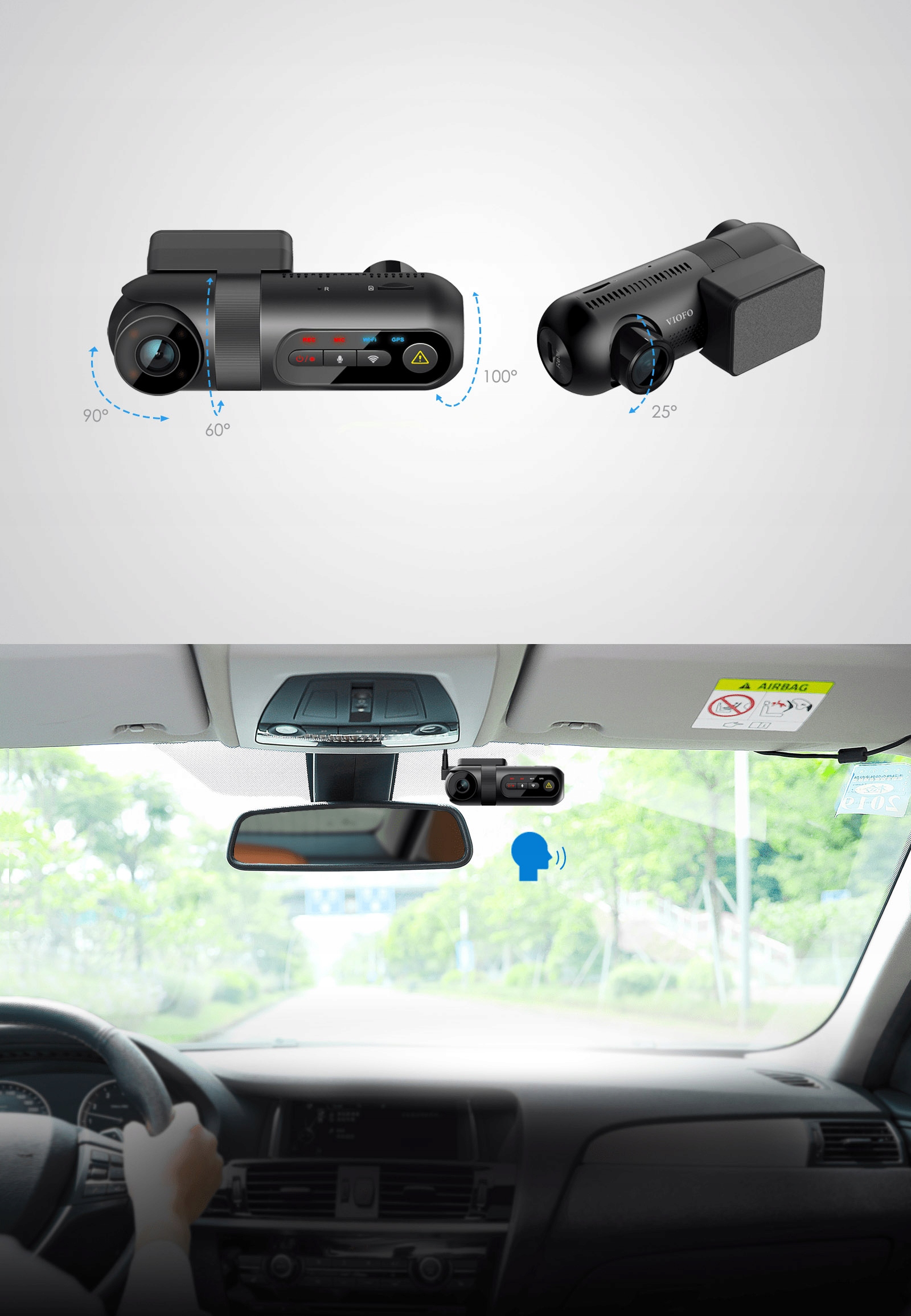 Model VIOFO T130 2CH wyróżnia się na tle konkurencji innowacyjną konstrukcją kamery wewnętrznej. Pozwala ona na płynną i szybką zmianę położenia obiektywu. W razie potrzeby kierowca może jednym ruchem skierować kamerę z wnętrza pojazdu na boczną szybę, co jest nieocenione np. podczas kontroli drogowej lub innych istotnych zdarzeń z boku pojazdu. Przedni moduł posiada szeroki zakres regulacji, dzięki czemu pasuje do 99% pojazdów, w tym do aut z pionową szybą, takich jak ciężarówki czy autobusy.