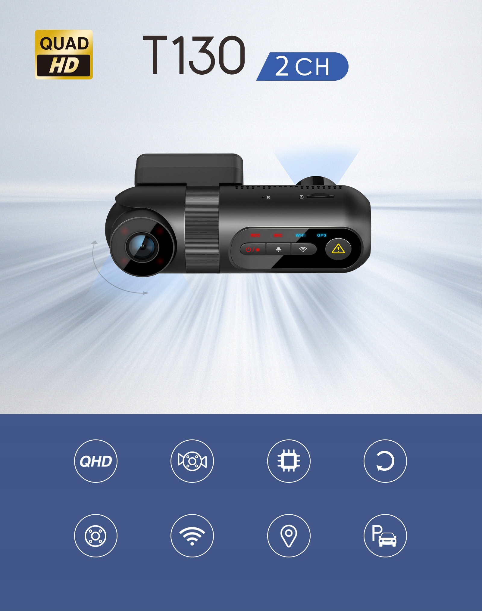 System VIOFO T130 rejestruje obraz z przodu w jakości 2560x1440P QHD (30 kl./s) oraz z wnętrza w rozdzielczości 1920x1080P FHD (30 kl./s). Dzięki zastosowaniu markowych przetworników SONY STARVIS oraz OMNI VISION, rejestrator stanowi pewne narzędzie dowodowe w każdej sytuacji drogowej, zarówno w dzień, jak i w nocy.