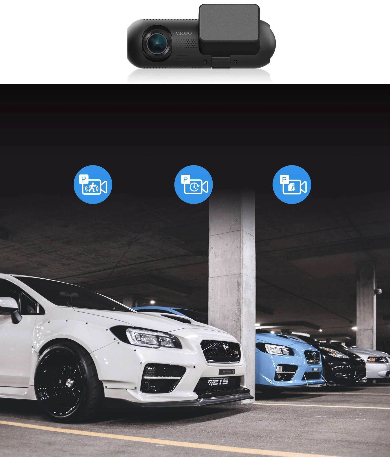Marka VIOFO wyposażyła serię T130 w inteligentny tryb parkingowy. Aby z niego korzystać, należy podłączyć kamerę na stałe do zasilania (zalecane użycie adaptera VIOFO HK4). System automatycznie przełącza się między trybem jazdy a monitorowaniem postoju. Użytkownik ma do wyboru trzy opcje dozoru: