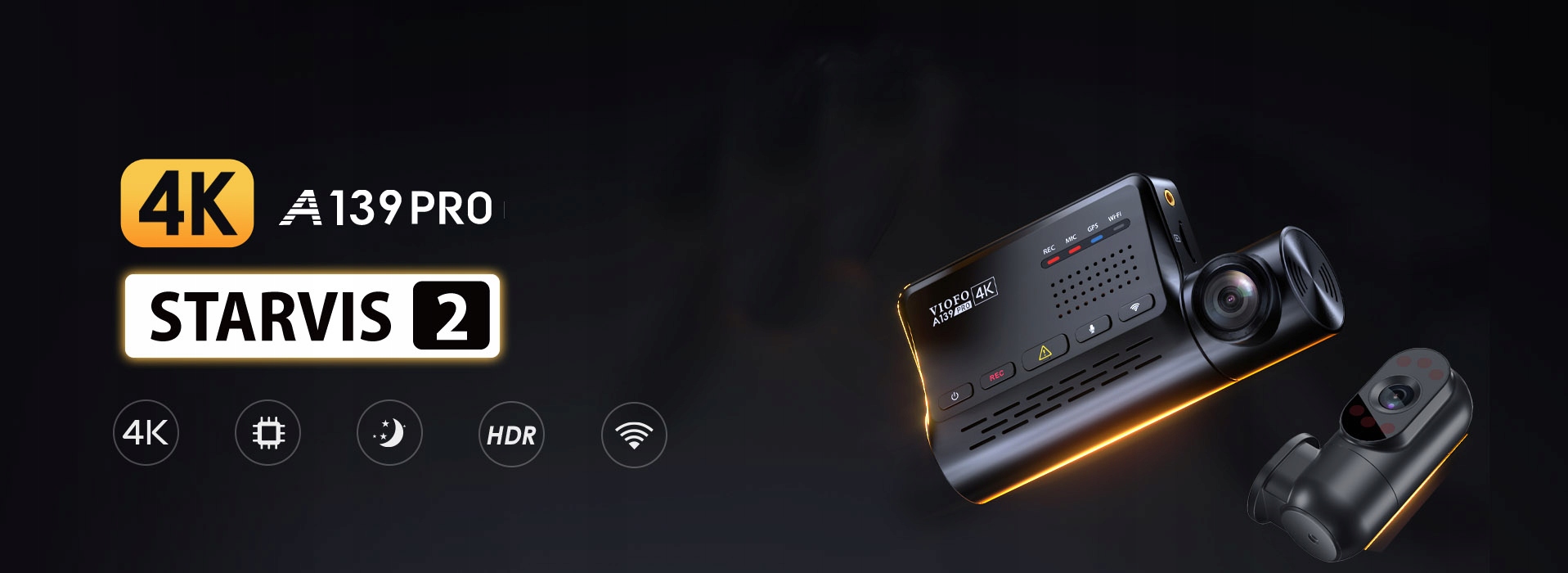 Kamera samochodowa VIOFO A139 Pro 2CH-G IR to ewolucja serii A139, wprowadzająca nową matrycę SONY STARVIS 2 IMX678. Pozwala ona na rejestrację obrazu w natywnej rozdzielczości 4K HDR. Wewnętrzna kamera bazuje na sprawdzonym sensorze SONY STARVIS IMX291, co gwarantuje czytelność nagrań w kabinie. Producent zadbał o pełną funkcjonalność, w tym dwupasmowy moduł WiFi, który umożliwia sterowanie rejestratorem i podgląd plików za pomocą darmowej aplikacji VIOFO na systemy iOS oraz Android.