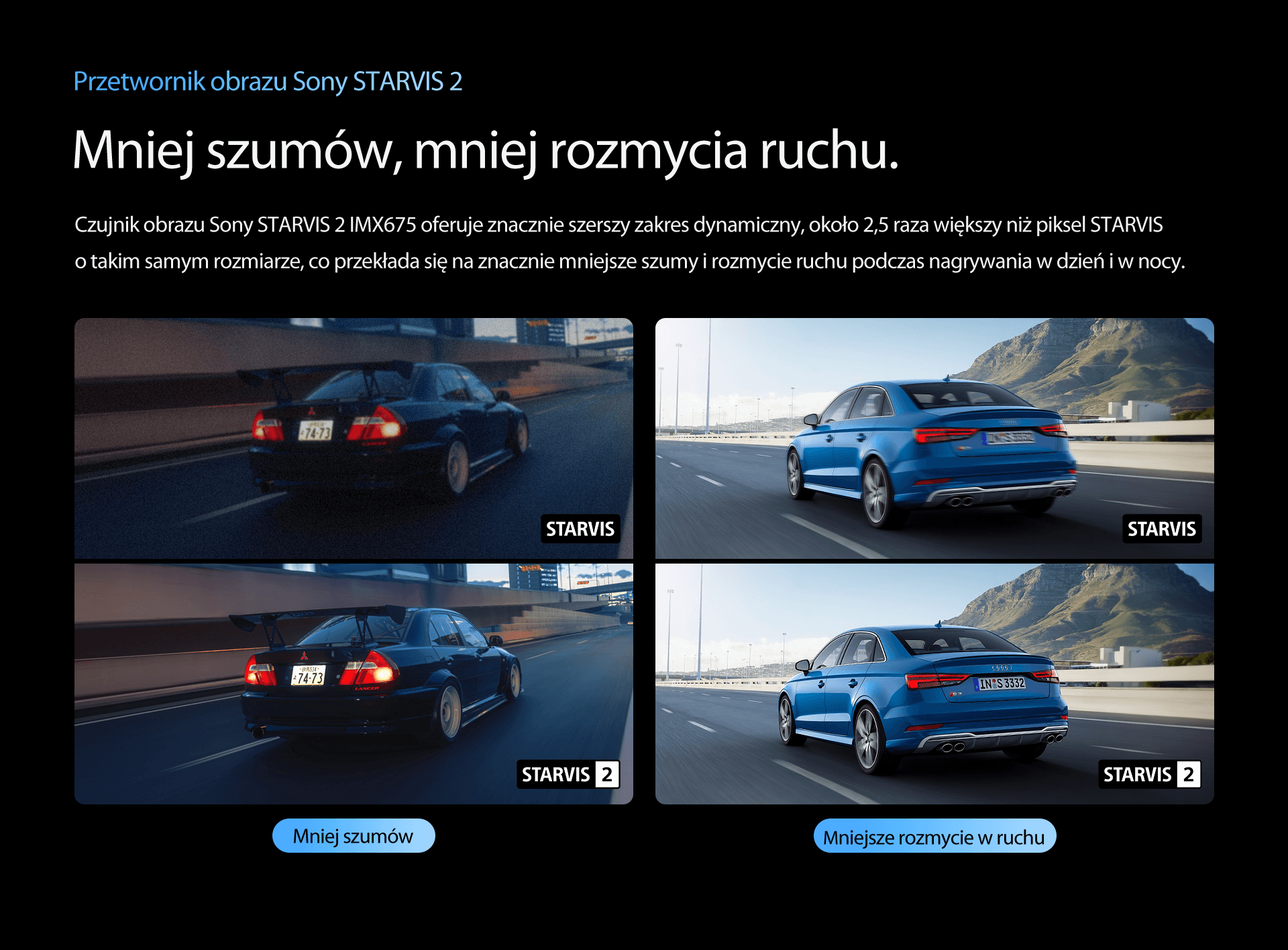 Jakość obrazu: Matryca Sony STARVIS 2 zapewnia o 2,5 raza większy zakres dynamiczny niż starsze generacje czujników.