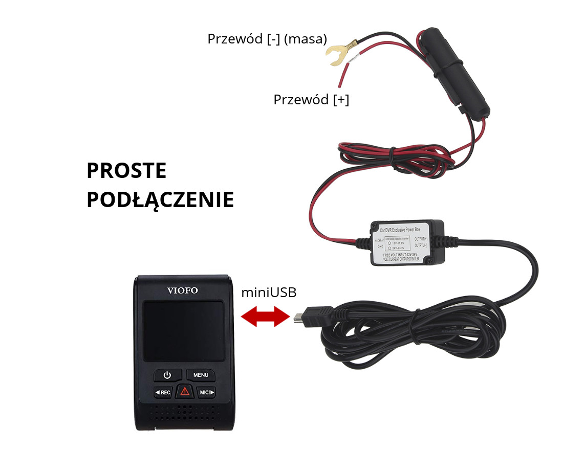 • Pozwala na podłączenie kamery bezpośrednio do instalacji elektrycznej samochodu