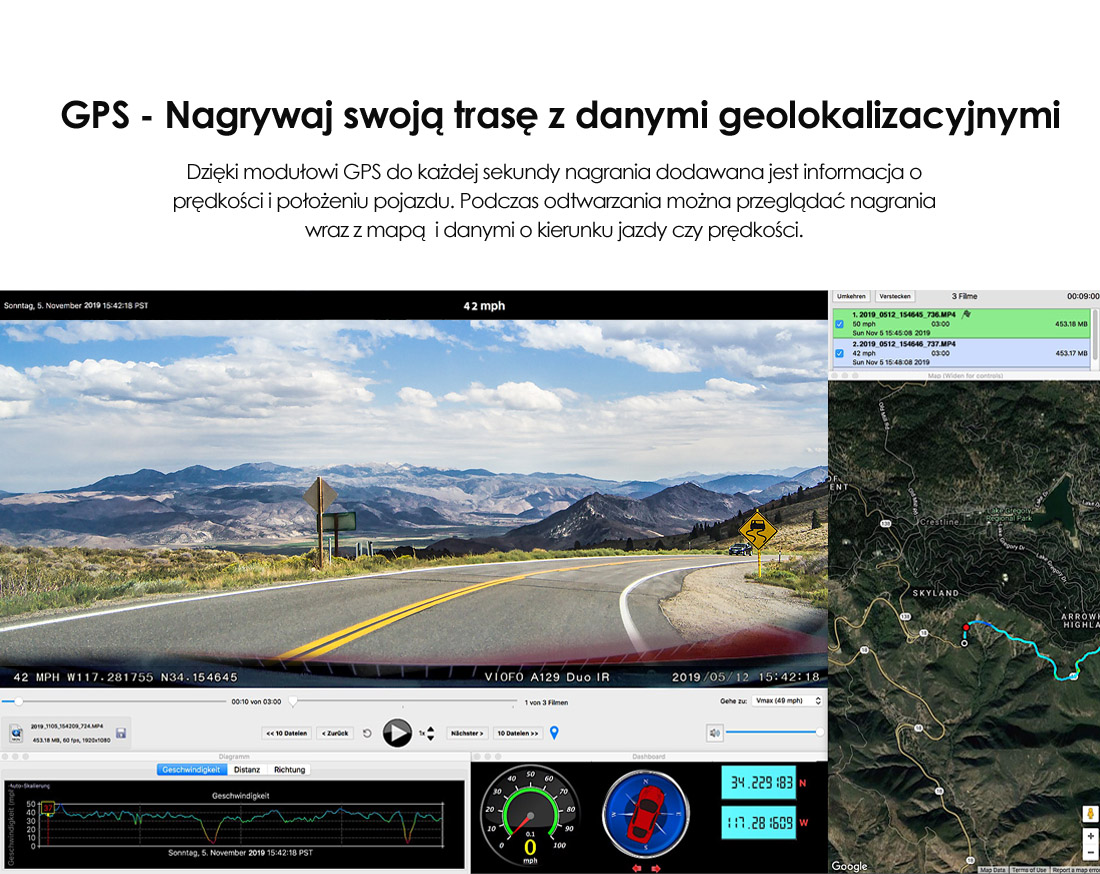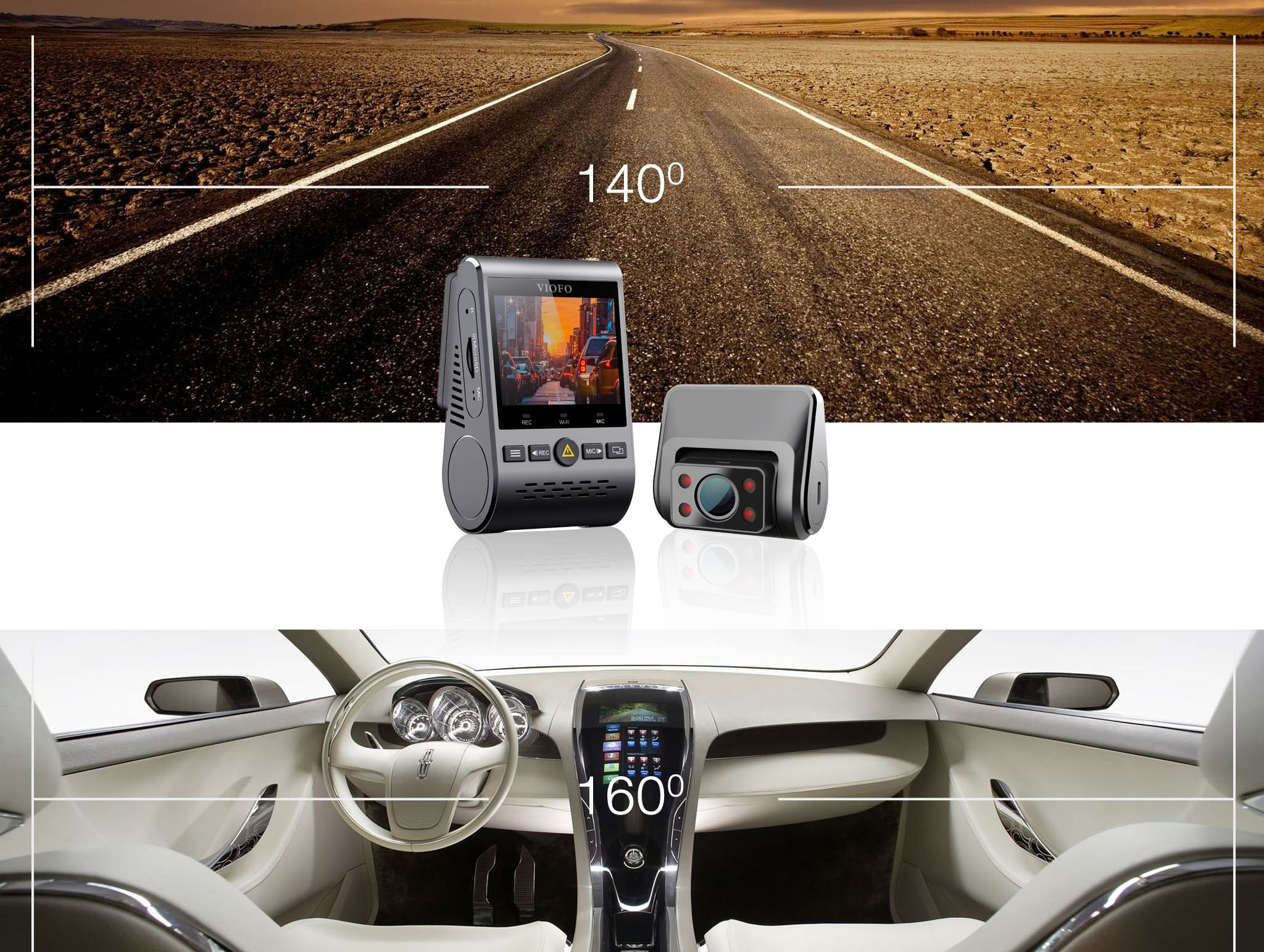 Najnowszy model z roku 2019 to kolejna wersja kamery samochodowej marki VIOFO, która posiada 2 kamery. Jedna wbudowana w główny moduł urządzenia + NOWOŚĆ: druga kamera dołączana na przewodzie USB do instalacji wewnątrz pojazdu.