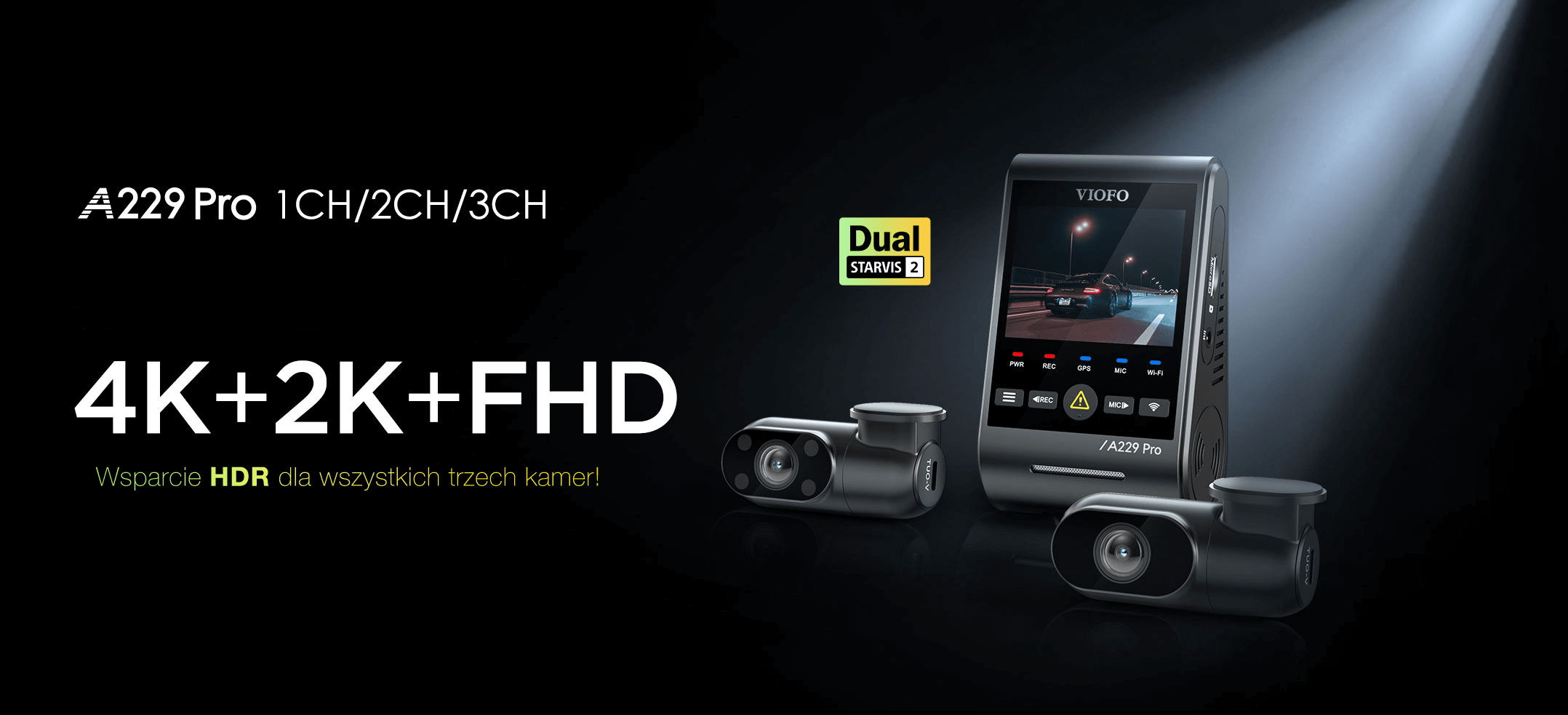 Najwyższa jakość VIOFO A229 PRO - pierwsza kamera od VIOFO z dwoma prztewornikami obrazu SONY STARVIS2 i trybem HDR obsługującym wszystkie 3 kamery!